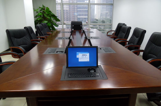 液晶升降器是計算機液晶顯示器,當不在桌面上時,需要使用顯示器,隱藏在會議桌內從電梯到會議桌下方的桌面;當不使用顯示器時,電···